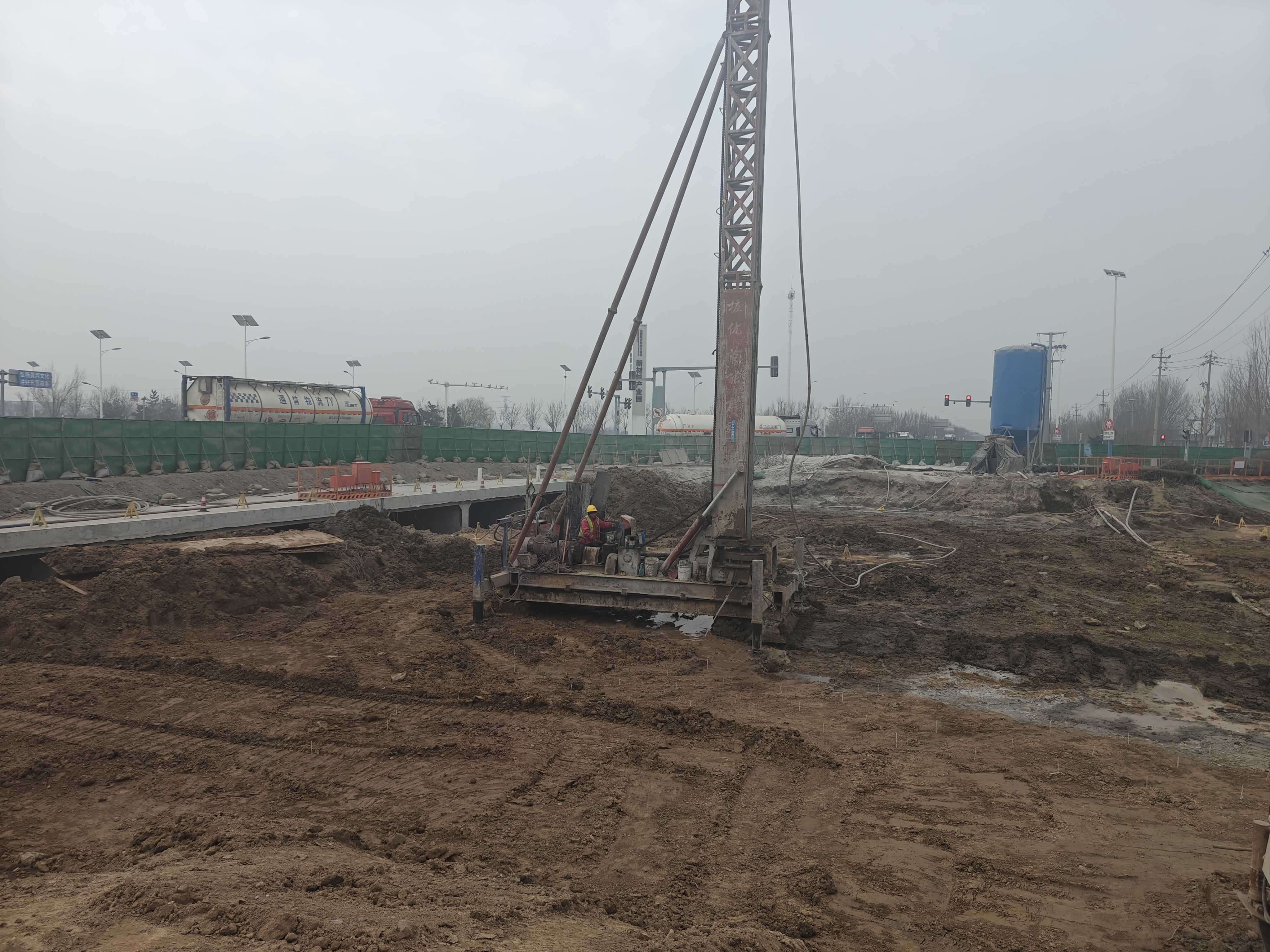 春节刚过,位于东营经济技术开发区的黄河路水系连通及泵站建设工程施工现场已是一片繁忙景象。工人们身着工装、头戴安全帽,或绑扎钢筋、或支护模板,挖掘机铁臂起落间,淤泥土方被精 准装载,运输车往来穿梭,机械轰鸣。
