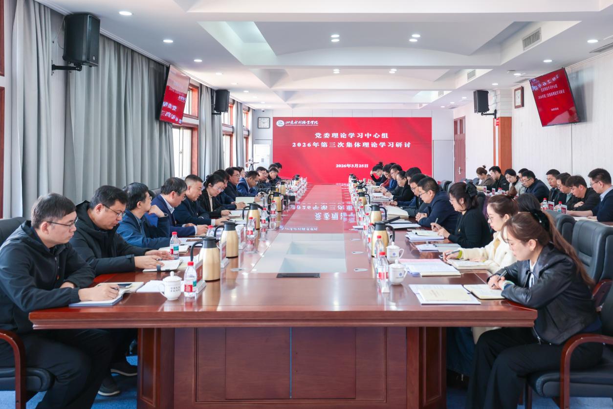 3月25日,山东水利职业学院党委理论学习中心组开展2026年第三次集体学习,围绕学习贯彻习近平文化思想和习近平总书记关于意识形态工作的重要论述,以及习近平总书记关于树立和践行正确政绩观的重要论述,联系实际进行学习交流研讨。党委书记王维主持集体学习并讲话。党委理论学习中心组成员,各党总支书记、部门主要负责人和青年干部代表参加学习。
