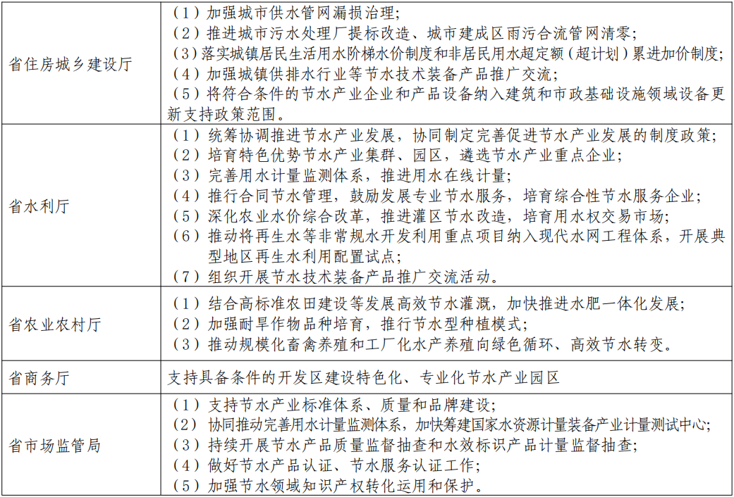 推动节水产业发展重点事项分工表