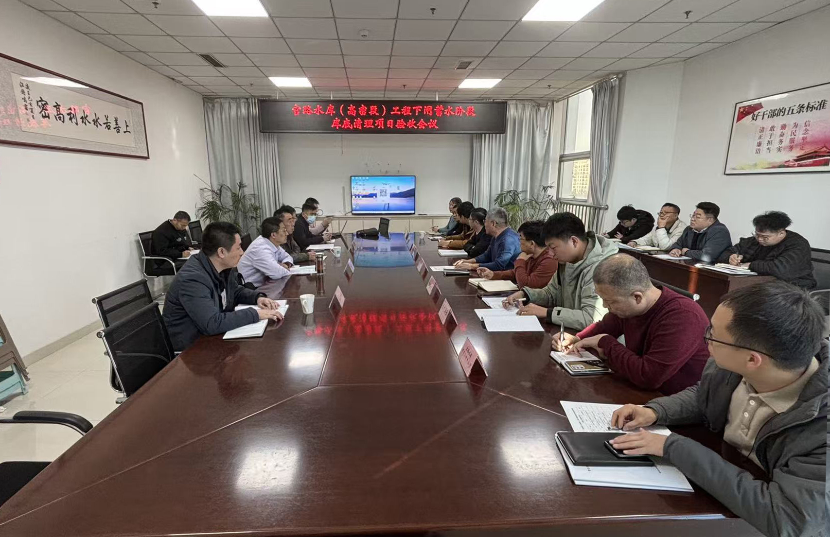 日前,高密市官路水库工程建设领 导小组组织召开官路水库(高密段)工程下闸蓄水阶段库底清理工作验收会议,各相关部门、建设项目法人单位及设计、监理、施工等参建单位的代表参加会议。