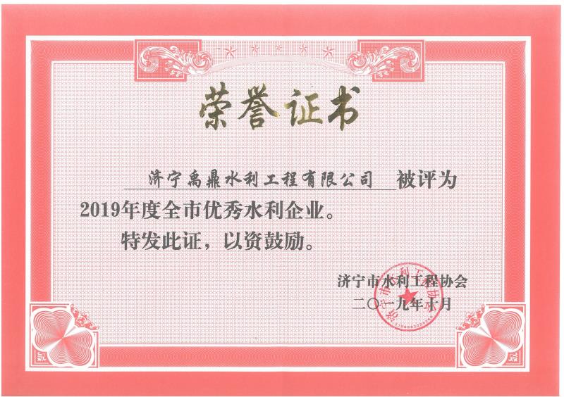 2019年全市***企业荣誉证书
