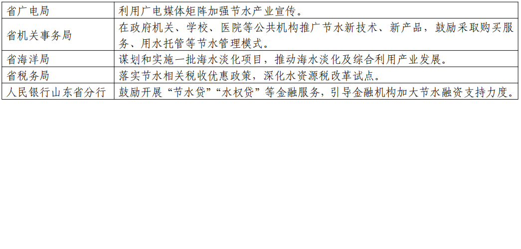 推动节水产业发展重点事项分工表