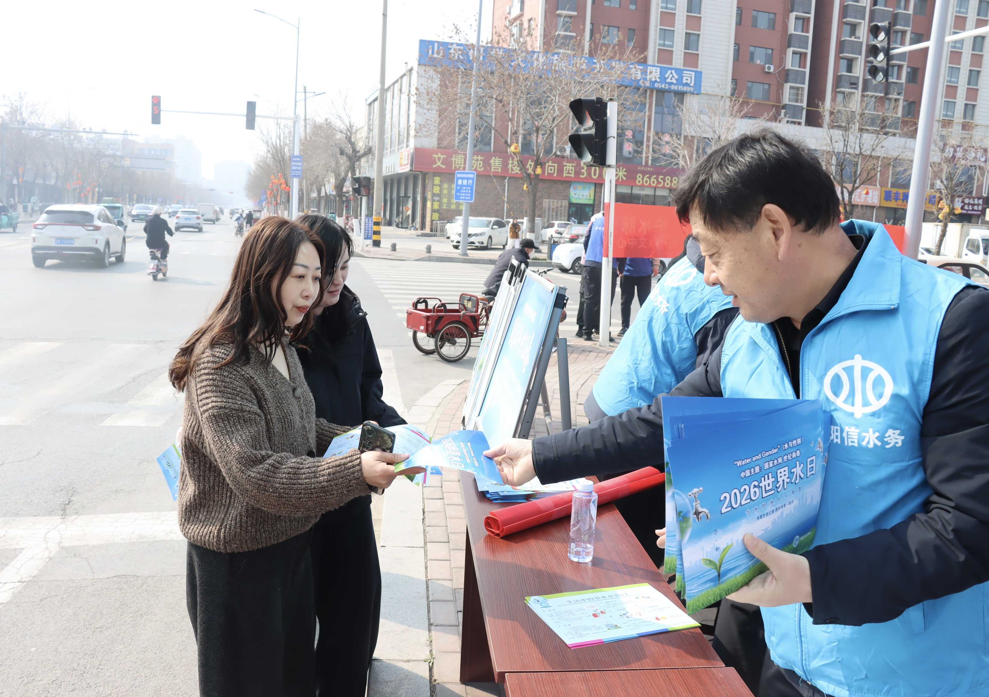 2026年3月22日是第三十四届“世界水日”,3月22-28日是第三十九届“中国水周”。联合国确定2026年“世界水日”主题为“Waterand Gender”(水与性别),我国确定2026年“中国水周”主题为“国家水网世纪画卷”。节水志愿者们通过悬挂宣传横幅、张贴节水宣传海报、发放节水宣传资料、面对面讲解等方式向市民宣讲《公民节约用水行为规范》《阳信县水预算管理办法(试行)》《阳信县再生水管理办法》,让群众深入了解水预算管理、再生水利用等法律知识,切实增强全民水法治观念和水预算意识。