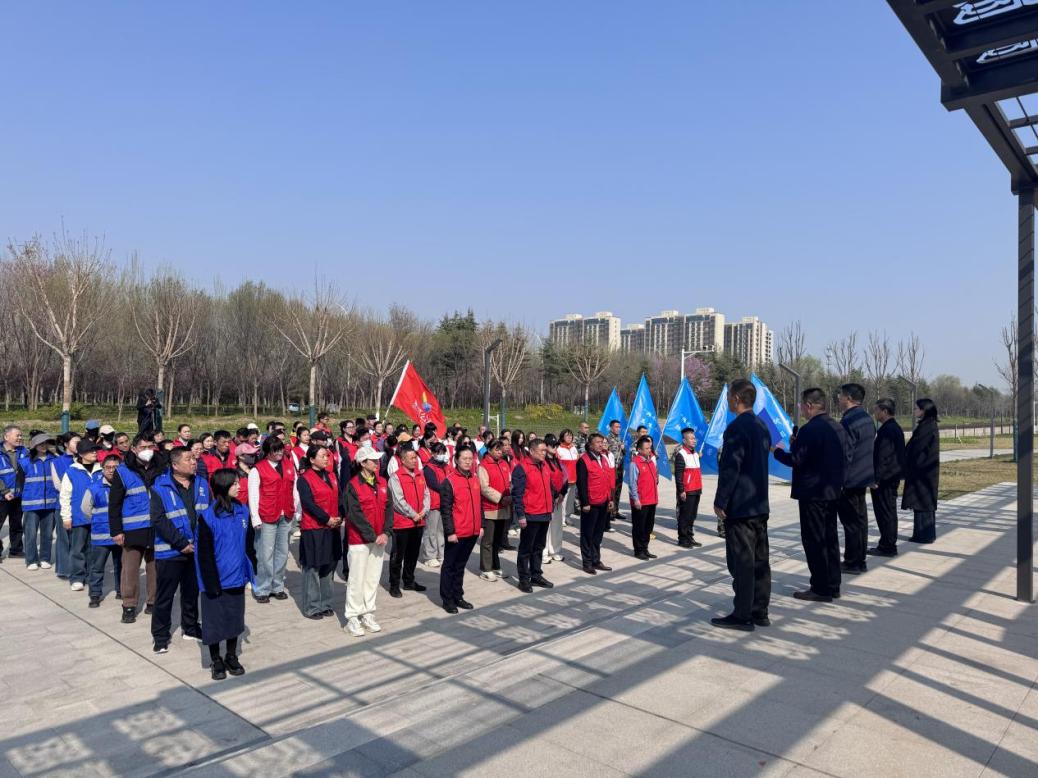 仪式结束后,志愿者们分组开展志愿服务活动。志愿巡河队伍携带清洁工具,在小圩河沿岸开展垃圾捡拾、巡河护水行动;在南小圩河大集,开展文明祭扫宣传及水利科普服务,向群众发放倡议书,讲解禁烧纸钱、不向河道抛撒杂物等要求,普及节水护水、防汛避险、防溺水安全知识,引导群众树立文明祭扫、爱水护水理念。
