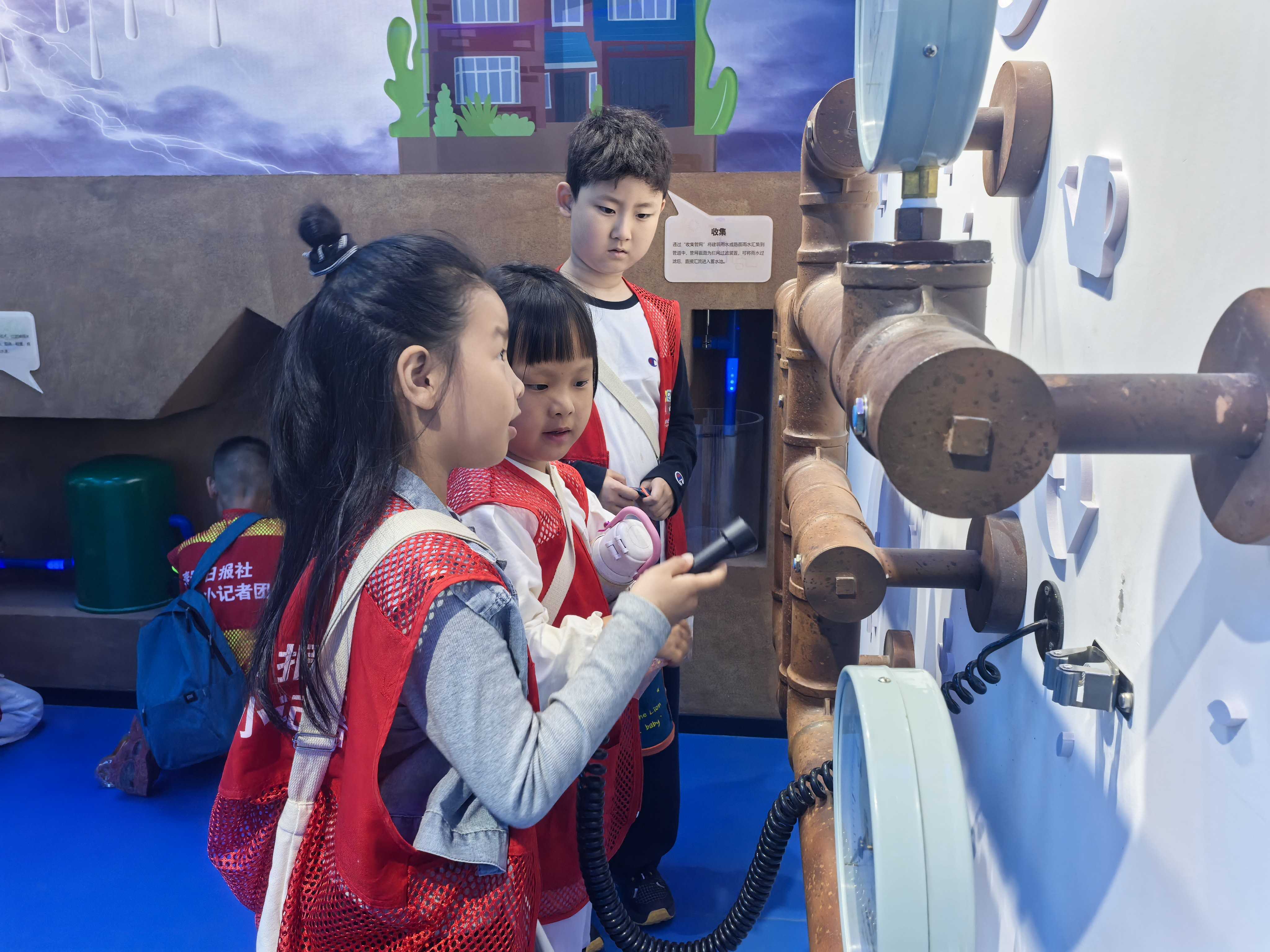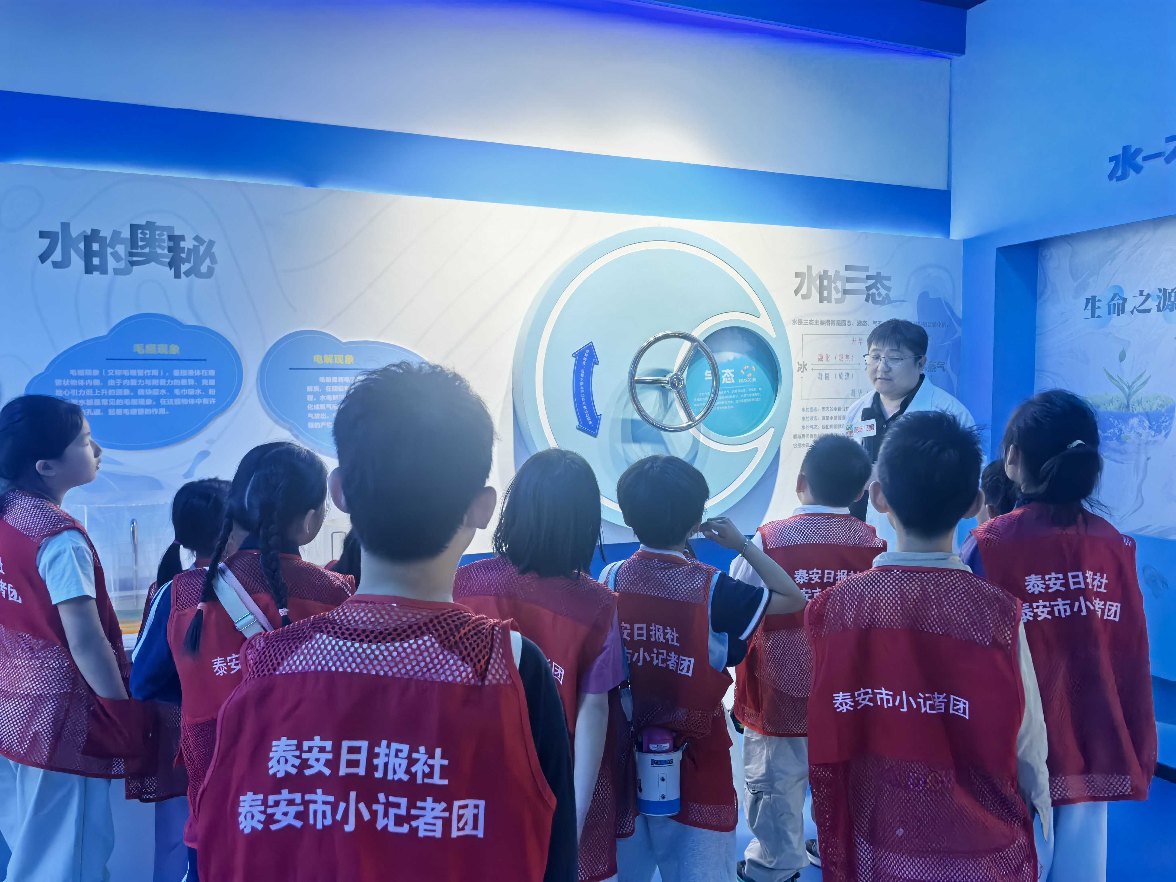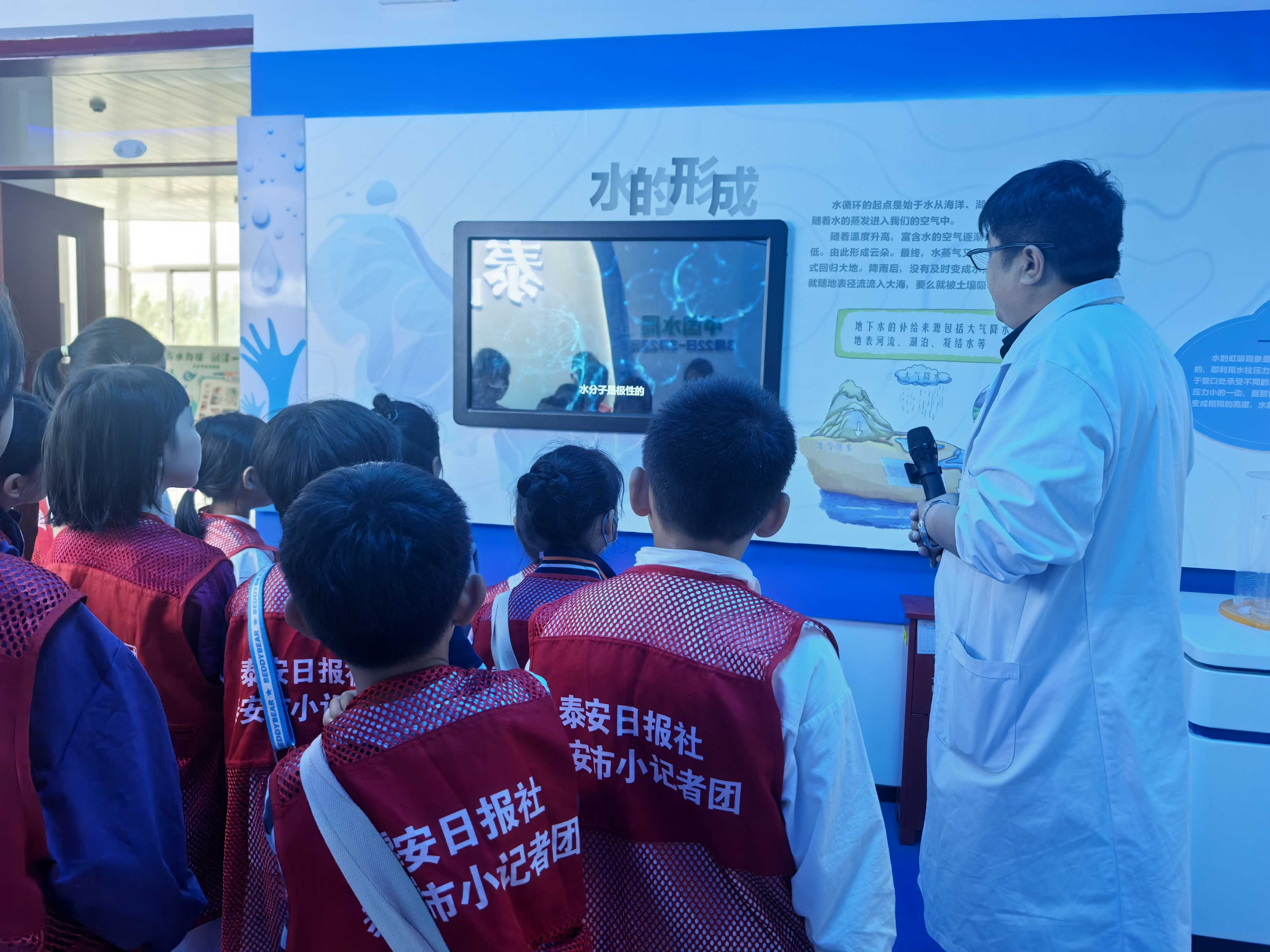 活动现场,小记者们身着统一马甲,在校园讲解员带领下有序参观基地展厅。其中,节水龙头对比装置、自来水制水流程展示,让大家清晰看懂日常节水小技巧;科学小课堂“消失的水”“消失的颜色”趣味实验激发了孩子们的探索欲,大家在动手操作中理解实验原理,将科学知识与节水理念相结合。